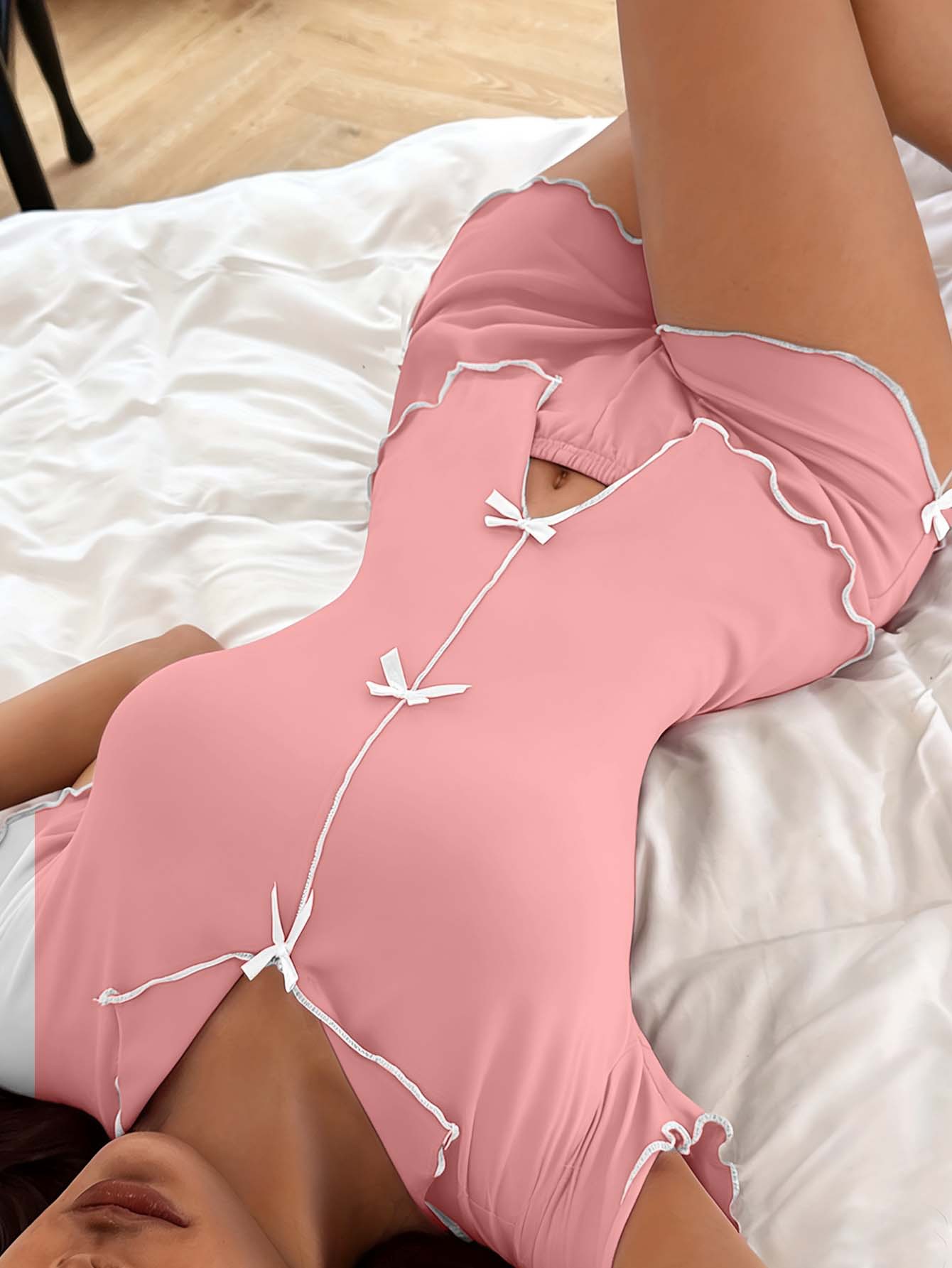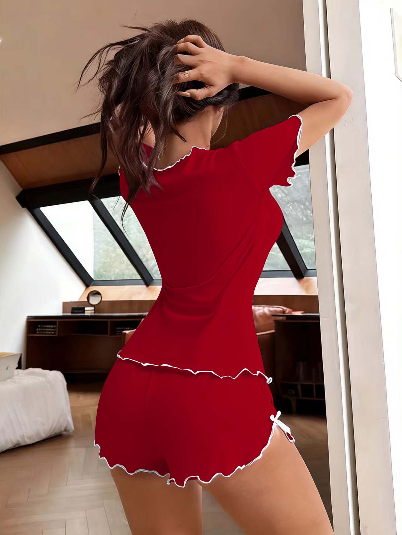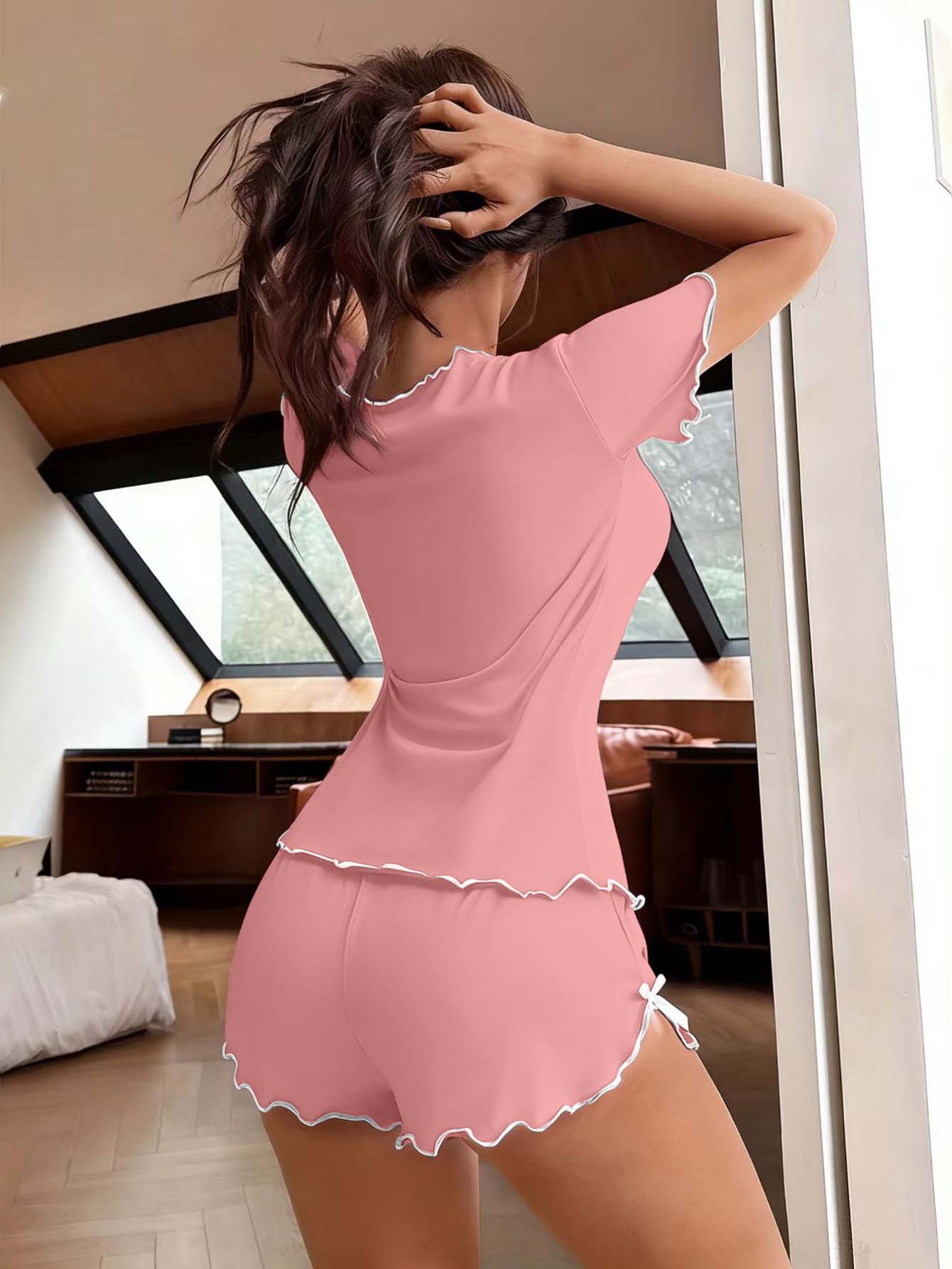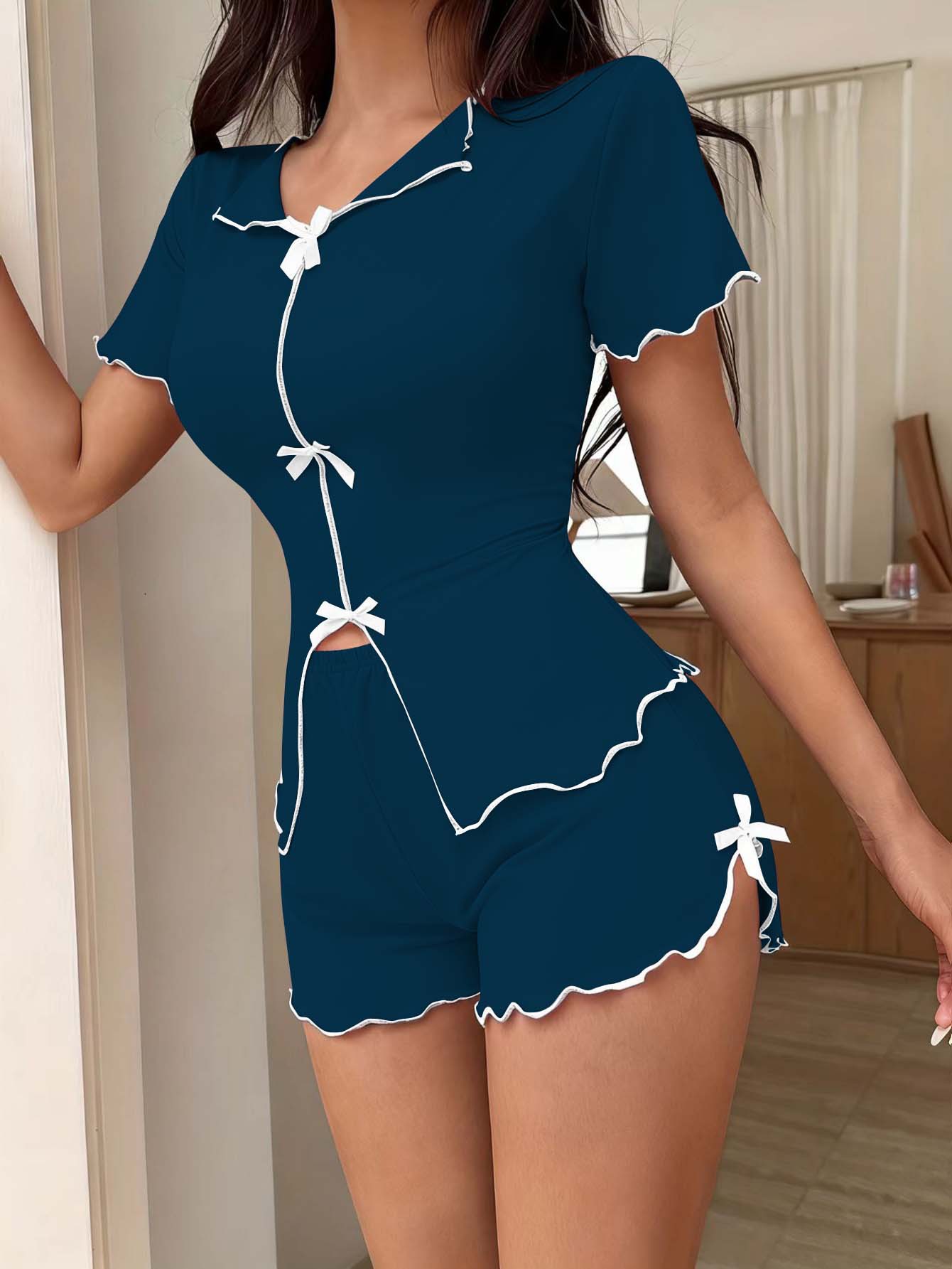 Bow-knot Sexy Stretchy Short-Sleeve Shorts Set